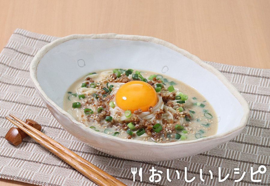 - 冷やし豆乳担々そうめん冷たい豆乳スープで食べる絶品そうめん。ねりごまのコクと花椒・唐辛子のピリ辛が絶妙なバランス。