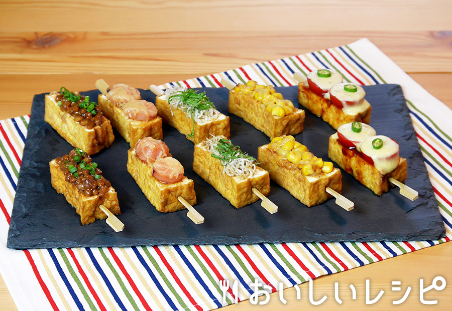 - 厚揚げ串焼き〈5種盛り〉エバラのたれで、厚揚げがおつまみメニューに大変身! おうちで居酒屋気分が楽しめます♪