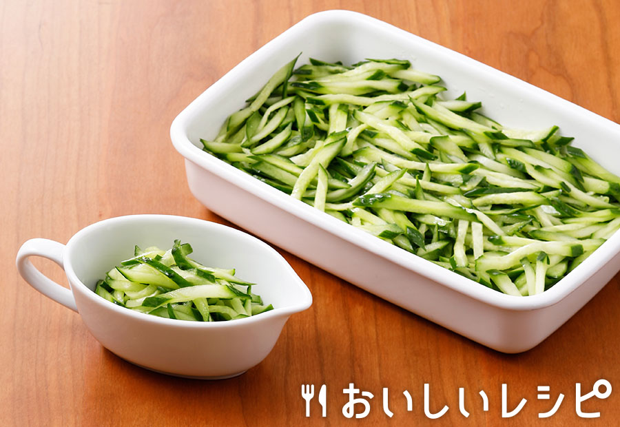 - きゅうりの浅漬けラペ千切りきゅうりの浅漬けは、いろいろな料理に活用できます。もちろん、そのまま食べても美味!